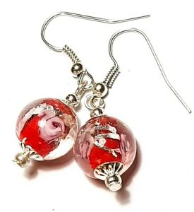 【送料無料】ジュエリー・アクセサリー ショートシルバーレッドローズイヤーズドロップペンダントペルセクロシェガラスビーズcourt argent rouge amp; rose oreilles goutte pendantes perce crochet verre bead