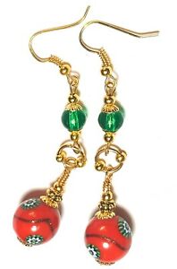 【送料無料】ジュエリー・アクセサリー ロングゴールデンオレンジグリーンイヤーズミレフィオーリパールグラスドロップペンダントペルセlong dore orange vert oreilles millefiori verre perle goutte pendantes perce