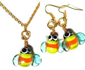 【送料無料】ジュエリー・アクセサリー ゴールドオレンジイエローチェーンビーコリアーイヤリングセットペルセパールグラス457cm or chaine orange jaune bee collier amp; earring set perce verre perle