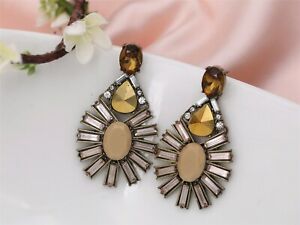 【送料無料】ジュエリー・アクセサリー イヤリングクリップゴールデンベージュドロップビッグアンバーアールデコboucles doreilles clip on non perce dore beige goutte gros ambre art deco a2