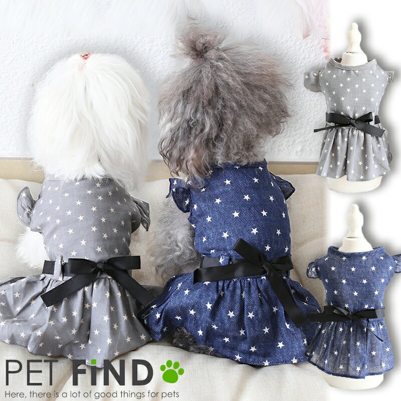 犬 夏服 春夏 星柄キャミワンピース リボン 星 前ボタン ドッグウェア 犬の服 ペット服 犬服 PETFiND 在庫限り
