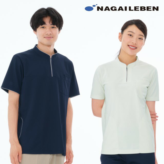 FT4502 ナガイレーベン ナースウェア スクラブ 前開き 男女兼用 半袖 ストレッチ性 制菌加工 制電 吸水 防汚 透け防効果 PHSポケット NAGAILEBEN 医療用 看護師 ユニセックス チュニック 上衣 ジャケット ジップアップ 白衣 ホワイト 白 ピンク グリーン 赤 ブルー