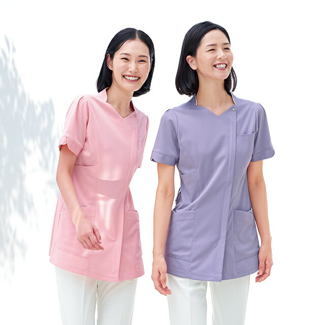 【正規代理店】FT4532 ナガイレーベン ナースウェア ジャケット 女性用 半袖 ストレッチ性 制菌加工 制電 吸水 防汚 透け防効果 PHSポケット ループ付き NAGAILEBEN 医療用 看護師 レディース レディス チュニック 上衣 白衣 ホワイト ピンク ブルー グリーン 赤 オレンジ