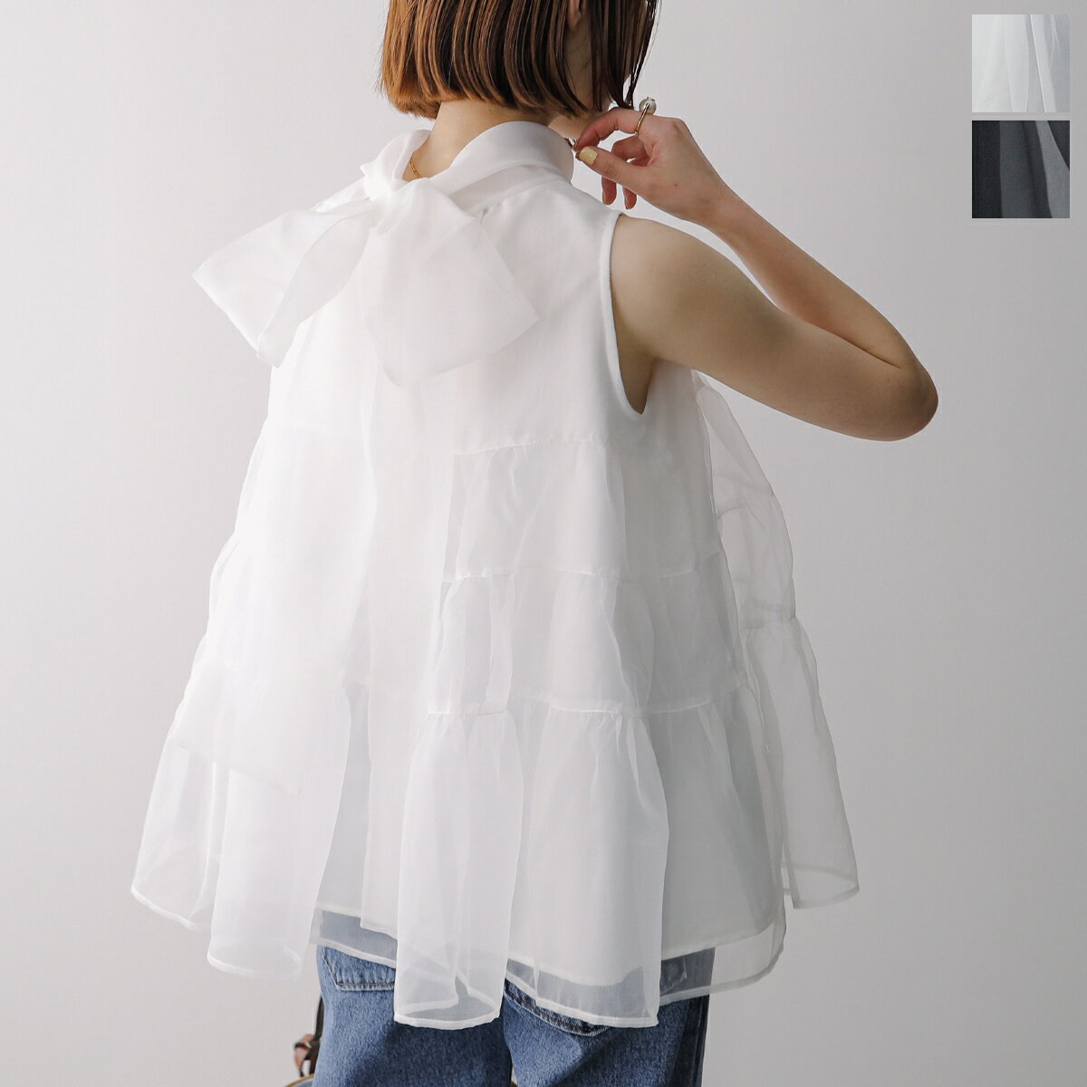 PICCIN ピッチン ティンカーブラウス 906190 レディース シャツ シアー ノースリーブ バックリボン ハイネック カラー2色