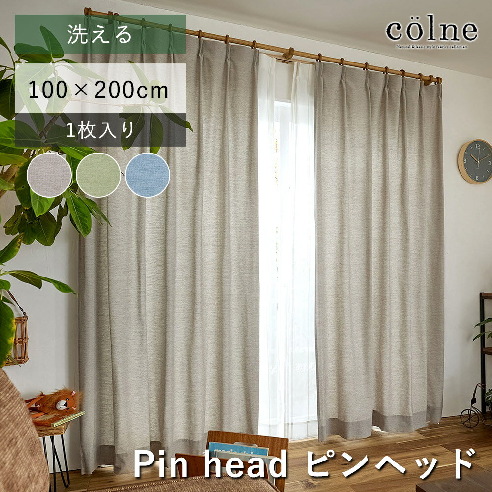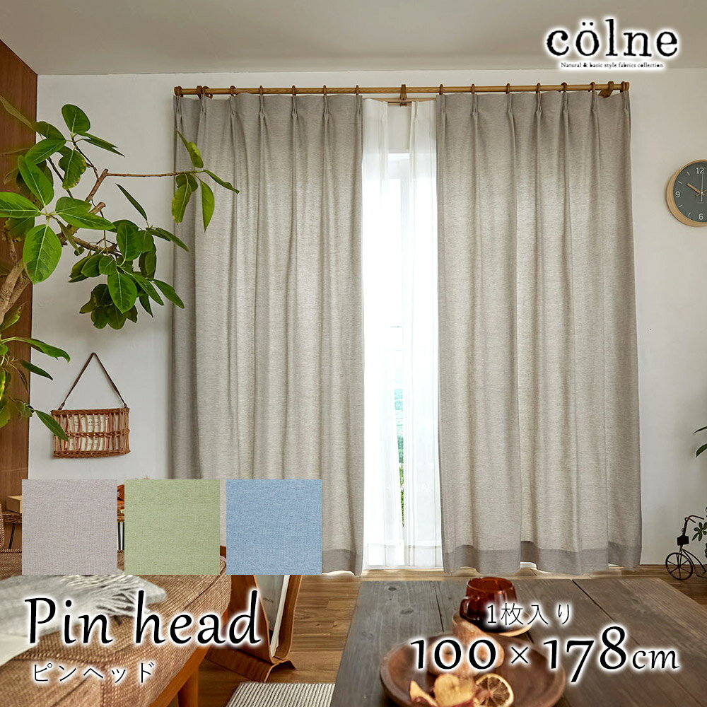 colne コルネ カーテン Pinhead / ピンヘッド 100×200cm (メーカー直送品)【ウォッシャブル/ナチュラル/グレー/グリーン/ブルー】