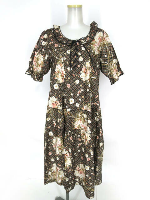 リサイクル品につきましては、記載に無い軽微なしみ・汚れ・傷等がある場合がございます。予めご了承の上ご購入ください。詳細はこちら ■商品説明■ 2013年 フェイバリットブーケシリーズのミディワンピースです。胸元の押さえタック、2段切替えでゆったりと広がるシルエットがナチュラルなデザインの半袖ワンピースです。腰ひも付きでウエストをスッキリと見せることも出来ます。フロント中央にはレースアップが施され、オシャレ感をプラス。落ち着いた色合いのチェック×淡いブーケが大人キュートな雰囲気に仕上げてくれるアイテムです。 ■商品の状態: B ■実寸:肩幅36 身幅50 着丈105.5 袖丈30(cm) ■色:黒 ■素材:綿100%
