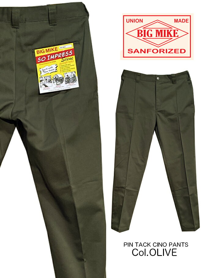 BIG MIKE(ビッグマイク) PIN TACK CHINO PANTS / 5-Col.OLIVE / Size.28/30/32/34/36[定番品]薄手ツイルで夏場快適素材~♪