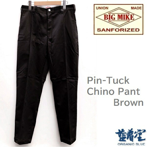 チノパン メンズ ゆったり Big Mike ビッグマイク Pin tack work pants TCツイル ピンタック ワークパンツ トラウザー ワイド テーパード パンツ タフツイル ボトムス カジュアル アメカジ ブラウン色 サイズ 28インチ 30インチ 32インチ 34インチ 36インチ送料無料