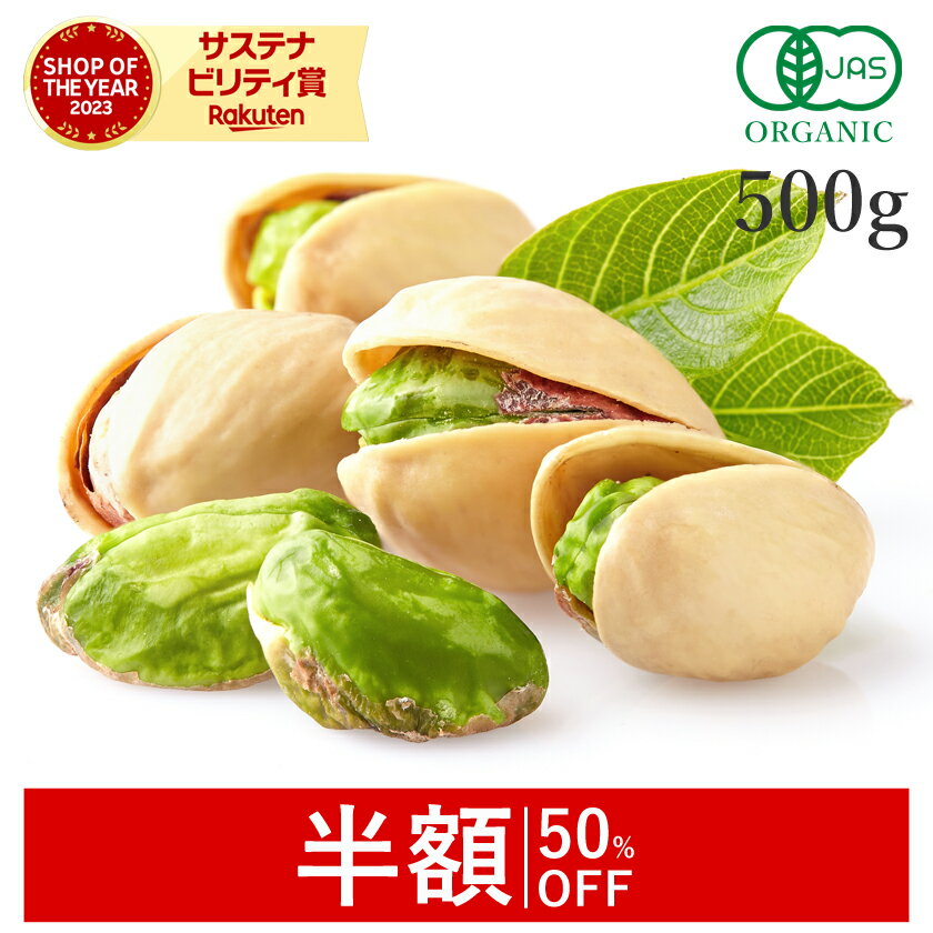 【半額/50%OFF】 ピスタチオ 無塩 殻付き 素焼き 500g オーガニック 無添加 (無塩 酸化防止剤不使用 防腐剤不使用 無漂白) 有機JAS上級グレード 高品質 ロースト ナッツ 国内焙煎 非遺伝子組み換え ヴィーガン 非常食 保存食 防災食 避難食 大容量