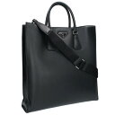 プラダ PRADA 2VG111 ロゴプレートレザー2WAYトートバッグ(ブラック)【120142】【SB01】【小物】【中古】bb355#rinkan*A