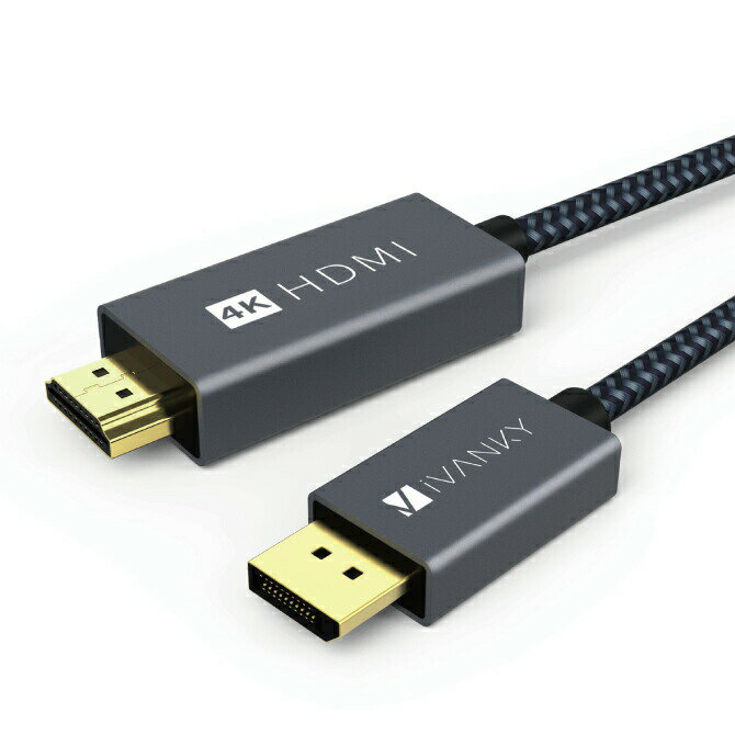 iVANKY VBC61 2m Grey & Black DisplayPort to HDMI Cable ディスプレイポート to HDMI ケーブル 4K@60Hz TV テレビ パソコン PC ノートパソコン Monitor モニター 高画質 ノイズ 低減 優れた 解像度 クリア 送料無料