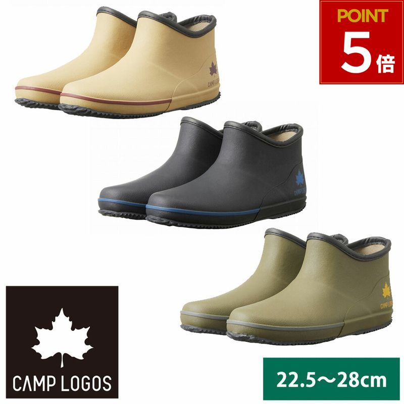キャンプロゴス CAMP LOGOS レインブーツ レディース メンズ ショート ショートレインブーツ キャンプ アウトドア レジャー 釣り フィッシング 雨 雪 ユニセックス 男女兼用 カーキ サンド ブラック SS S M L LL XL コンパクトレインブーツ