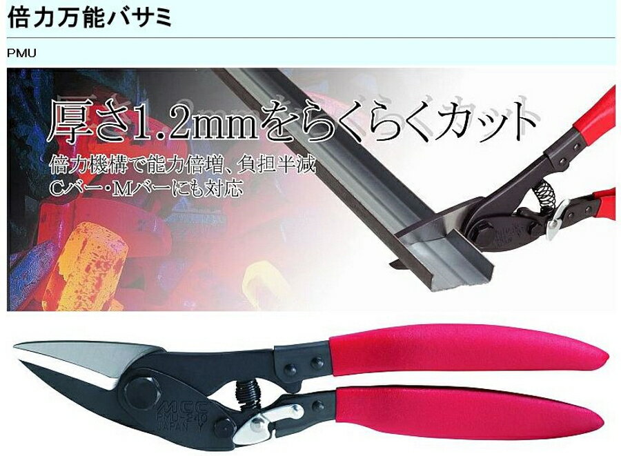 MCC 倍力万能バサミ PMU−240 厚さ1.2ミリを楽々カット 倍力機構 プロが選ぶ工具