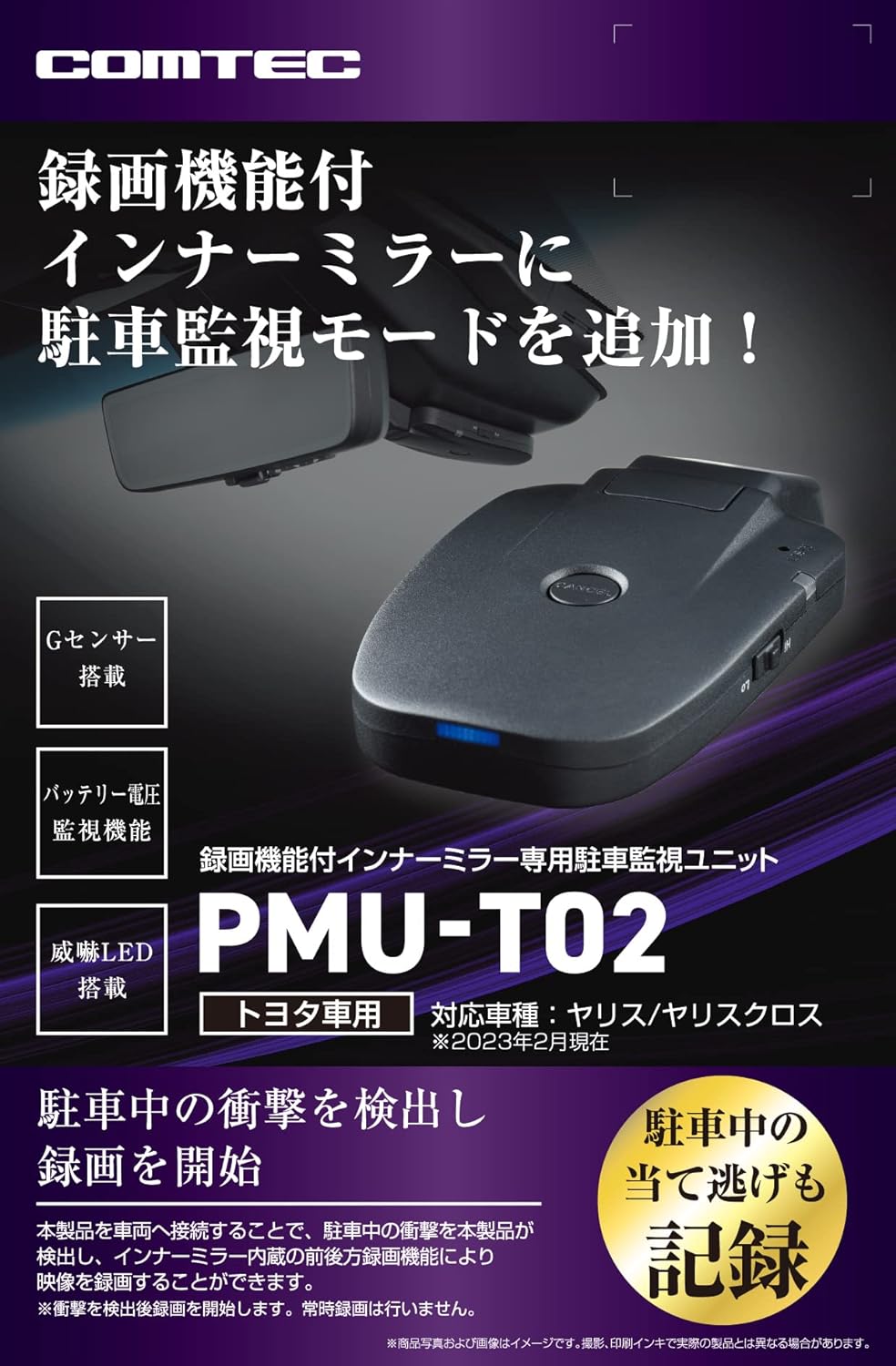 PMU-T02 COMTEC コムテック 録画機能付インナーミラー専用駐車監視ユニット トヨタ ヤリス/ヤリスクロス(R4.8~)等 威嚇LED搭載 Gセンサー搭載