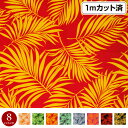 【即納】生地 ハワイ柄 ハワイアン柄生地(約113cm巾x1mカット済) 布 ヤシの木 柄 ハワイアンプリント生地 パウスカート生地 フラダンス衣装の材料 クッションカバー 綿混 オレンジ-グリーンーレッドーグレー-チェリーピンク-アースブルー-ブラック L34F06 [M便 1/2] PNF