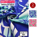 【即納】生地 W巾 ハイビスカスプリント カットクロス (約145cm巾x2mカット済) ハワイアン衣装 フラダンス衣装の材料 パウスカートを作る クッションカバー カフェカーテン インテリア小物 綿混 ブルー ピンク JPT210103 [M便 2/3] PNF