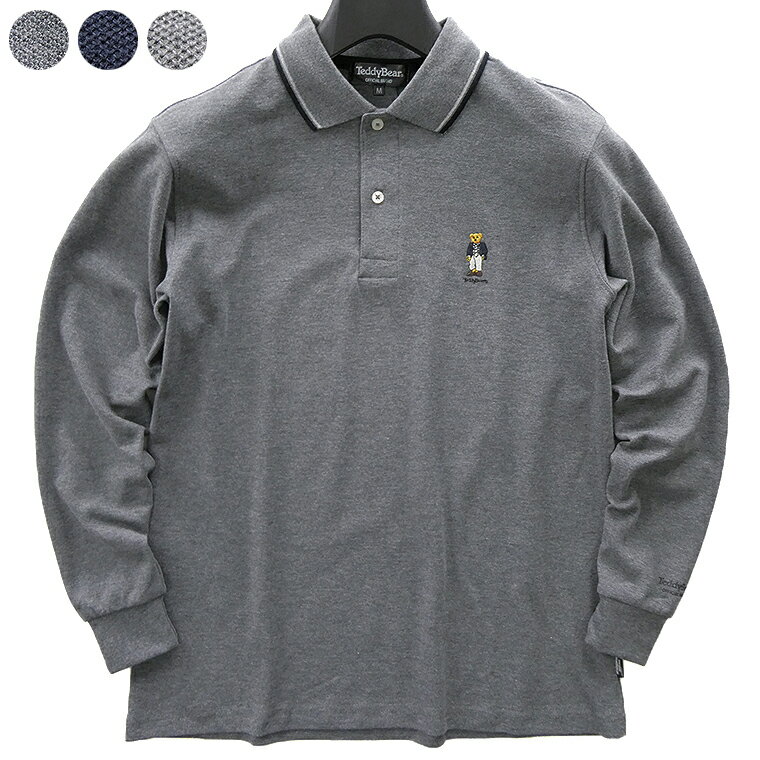 Teddy Bear テディベア 2025年 新作 コットン 長袖 ポロシャツ / ライン ロゴ 刺繍 カノコ メンズ トップス カジュアル スポーツ ブランド 父の日 敬老の日 クリスマス ギフト プレゼント POLOSHIRT