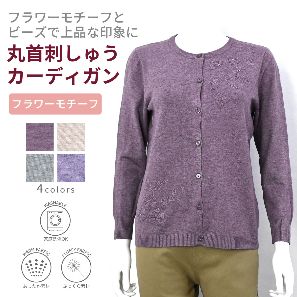 婦人 長袖 花柄 刺繍 もちもち ニット カーディガン Pono Marie ポノマーリエ