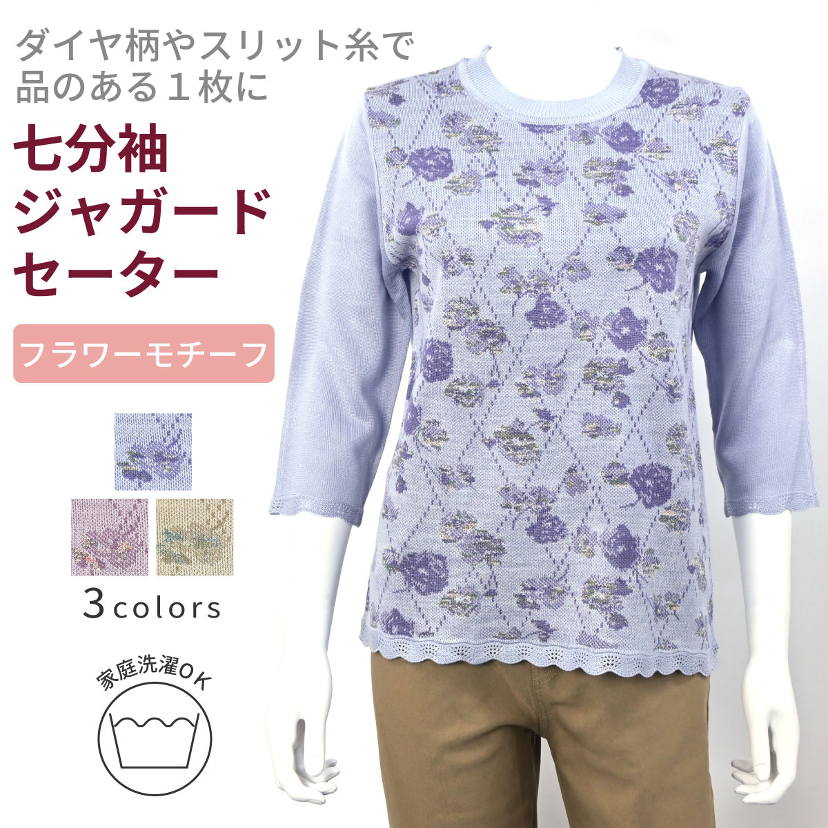 婦人 七分袖 花柄 コンピュータージャガード セーター Pono Marie ポノマーリエ