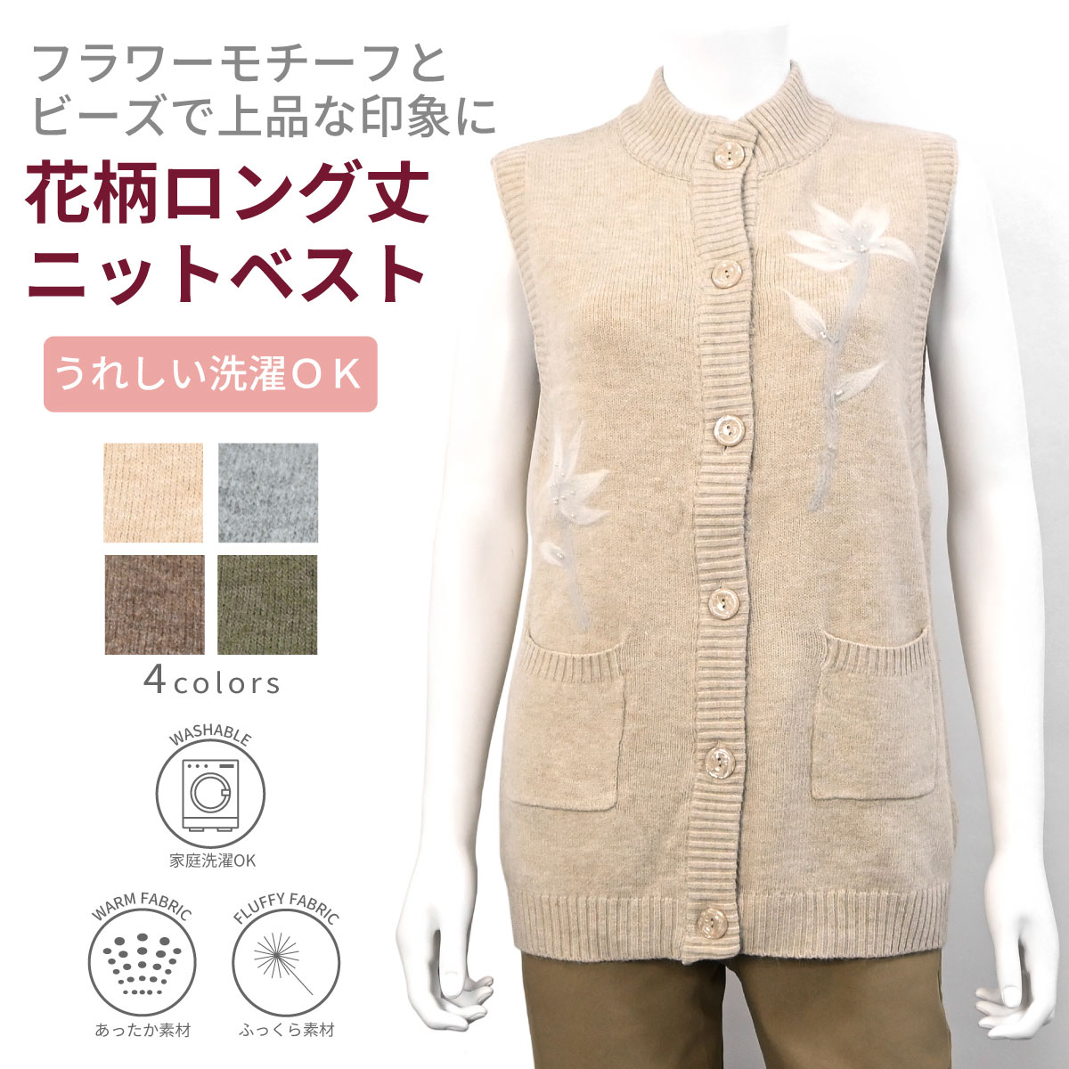 婦人 花柄 ニット ロング ベスト Pono Marie ポノマーリエ