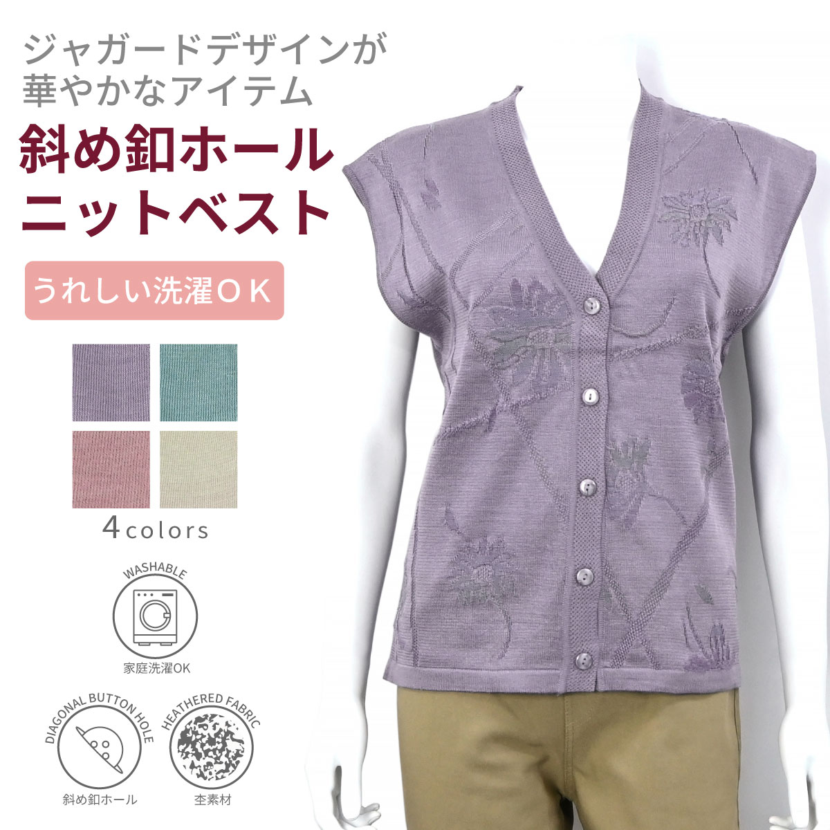 【送料無料】婦人 斜め釦 ホール コンピューター ジャガード ベスト Pono Marie ポノマーリエ