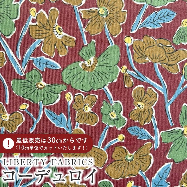 LIBERTY FABRICS リバティプリント コーデュロイ(コール天)生地<Louie's Poppies>(ルイズ・ポピーズ)【ブラウン地】1225215-P25A