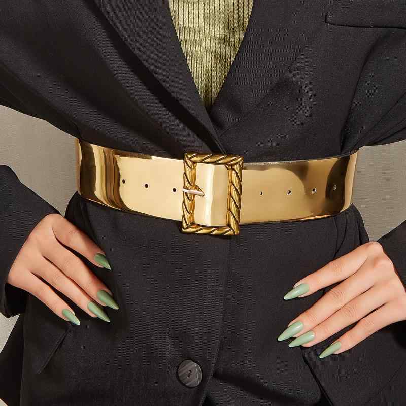ベルト レディース ファッション PVC プラスチック 合金バックル 太ベルト ゴールドカラー 105cm