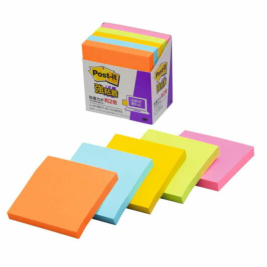 商品カラー:多色アソート(エレクトリックブルー, ライム, オレンジ, ローズ, ウルトライエロー) サイズ:75mm×75mm 入り数:90枚×5パッド配送宅配便キャンセルポリシー誤配送や、不具合はすぐに対応いたします(到着7日以内にご連絡ください) 発送後のお客様都合のキャンセルはお受けできません・オフィスの定番、ポスト・イット® 強粘着ふせん/粘着メモ・粘着力が約2倍の強粘着タイプです。(当社通常粘着製品比)・パソコンや電話、キャビネットなどの樹脂面や垂直面など、今まではがれやすかった場所にもしっかり貼れます。また、繰り返しはったりはがしたりできます。・水分散性粘着剤を使用しています