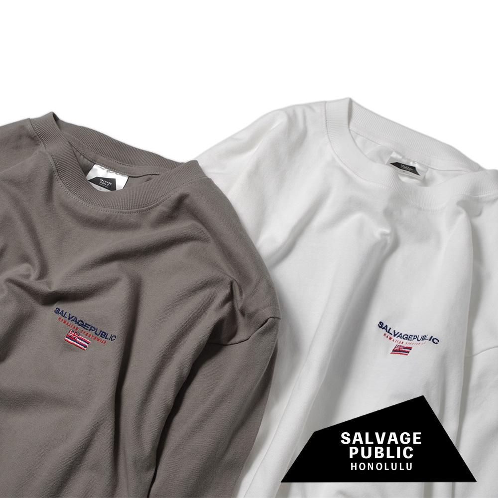 【SALVAGE PUBLIC(サルヴェージ・パブリック)】Pigment L/S Tee(FLAG STAMP EMB) ピグメントロングスリーブTeeシャツ 星条旗刺繍