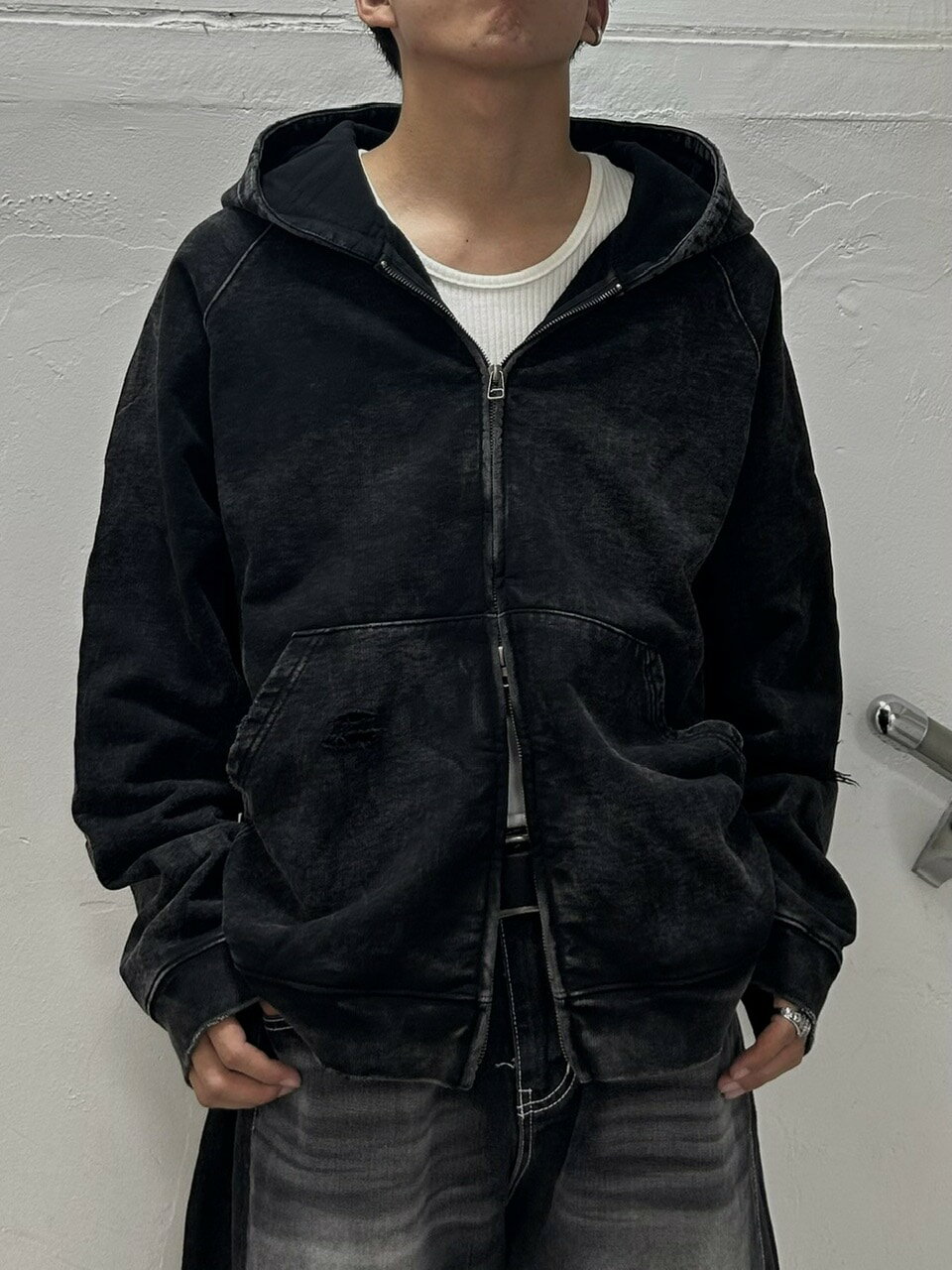 【Chikashitsu +】set up pigment damage zip up hoodie