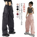 ロング丈 ワイドカーゴパンツ レディース ミリタリーパンツ ヒップポップ ゆったり 2WAY ワークパンツ パンツ イージーパンツ 薄手 ウエストゴム 春 夏 カーゴパンツ ダンスパンツ 秋