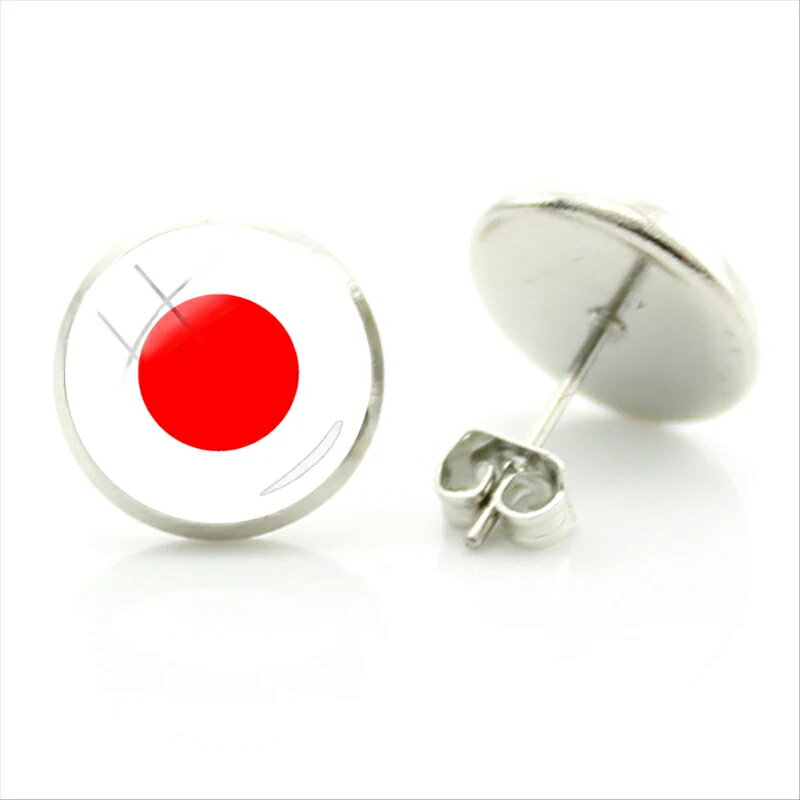 14mm カボションピアス (国旗:日本) 1ペア 両耳 日の丸 NIPPON ワールド 国際大会 応援 スポーツ 世界 丸型 丸い カボーション 20G 20ゲージ スタッドピアス キャッチピアス メンズ レディース プレゼント 誕生日 入学式