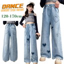 韓国風 デニムパンツ k-pop 衣装 キッズ ダンス 衣装 ヒップホップ ワイドパンツ ジーンズ ジャズダンス ヒップホップ ハート柄 女の子 ダンス衣装 キッズ 子供服 発表会 練習着 高校生 中学生 応援団 カジュアル 美脚 普段着 着痩せ 120 170cm