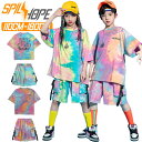 タイダイ柄 上下セット キッズ ダンス衣装 セットアップ 女の子 男の子 おしゃれ ファッション HIPPOP JAZZ ダンス 2点セット 夏 半袖tシャツ セット トップス ハーフパンツ 虹色 カーゴパンツ 韓国K-POP ジャズダンス ヒップホップ 発表会 団体服 演出服 応援団 練習着 派手