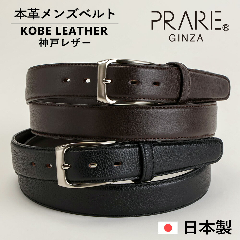 PRARE GINZA(プレリーギンザ) ベルト メンズ 本革 ビジネス 日本製【プレリー銀座 革 ベルト 30mm ピン式 神戸 レザー KOBE LEATHER ブラック ダークブラウン 皮ベルト 革ベルト 男性 スーツ レザーベルト フォーマル 冠婚葬祭 カジュアル ギフト men's belt】