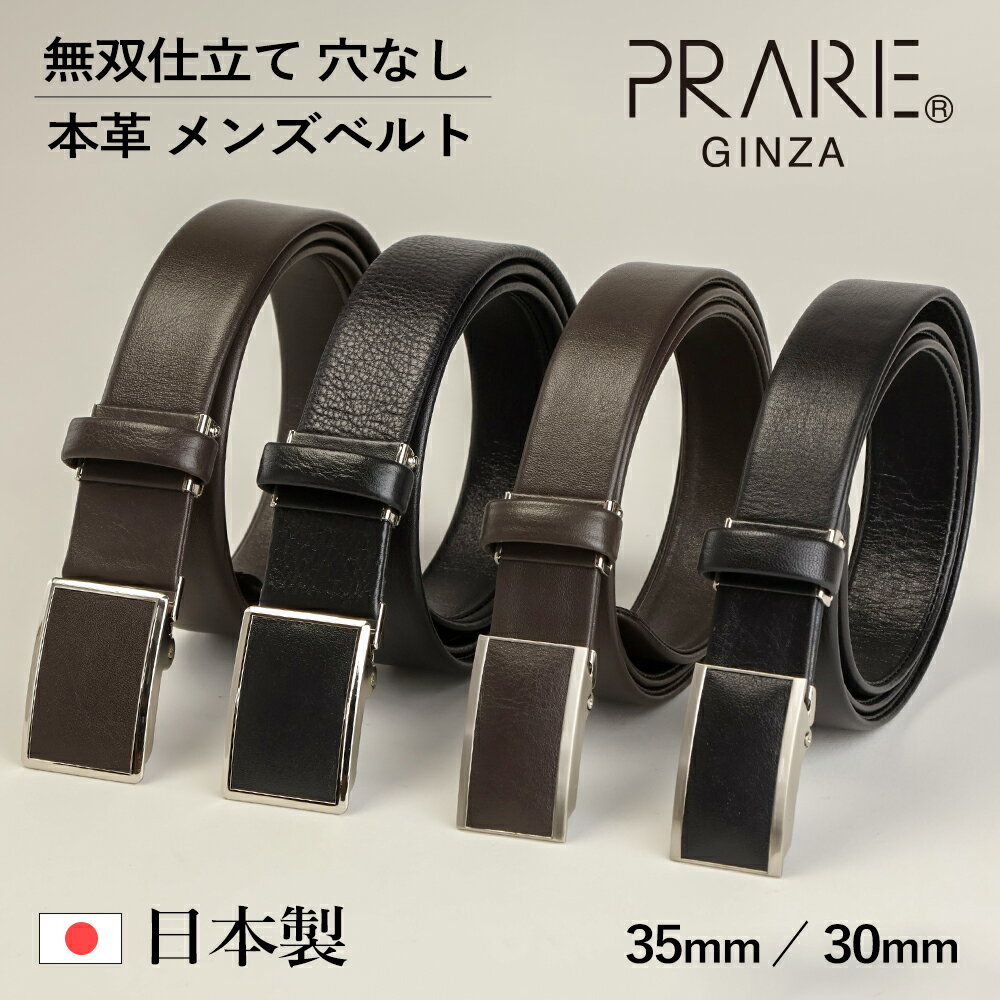 PRARE GINZA(プレリーギンザ)ベルト メンズ 本革 ビジネス 日本製【ベルト メンズ 穴なし 本革 無段階調整 ベルト 無段階ベルト 一本無双 袋縫無双 30mm 35mm ブラック ダークブラウン オートロック ベルト 革ベルト 男性 スーツ レザーベルト フォーマル 冠婚葬祭 men's】