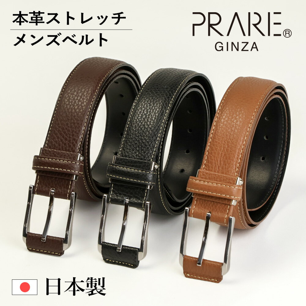 PRARE GINZA(プレリーギンザ) ベルト メンズ 本革 ビジネス 日本製【プレリー銀座 革 ベルト 35mm ピン式 ストレッチ 伸縮 ベルト メンズ ブラック ブラウン ダークブラウン 革ベルト 男性 スーツ フォーマル カジュアル men's belt】