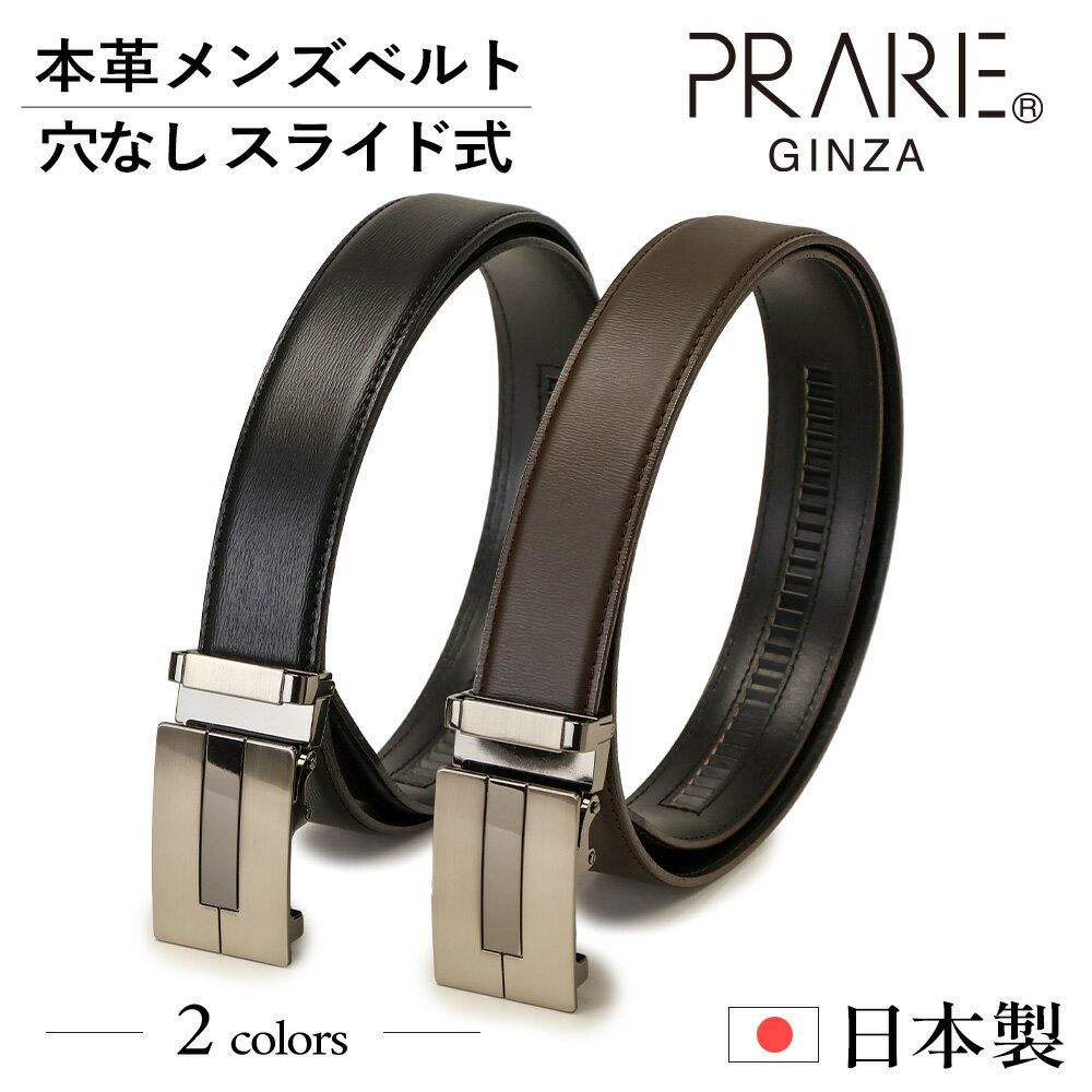 PRARE GINZA(プレリーギンザ) ベルト メンズ 穴なし 本革 ビジネス 日本製【無段階調整 ベルト メンズ 本革 無段階調節 ベルト 35mm ブラック ダークブラウン 革ベルト 男性 スーツ レザーベルト スライドベルト オートロック ベルト 冠婚葬祭 ギフト プレゼント 実用的】