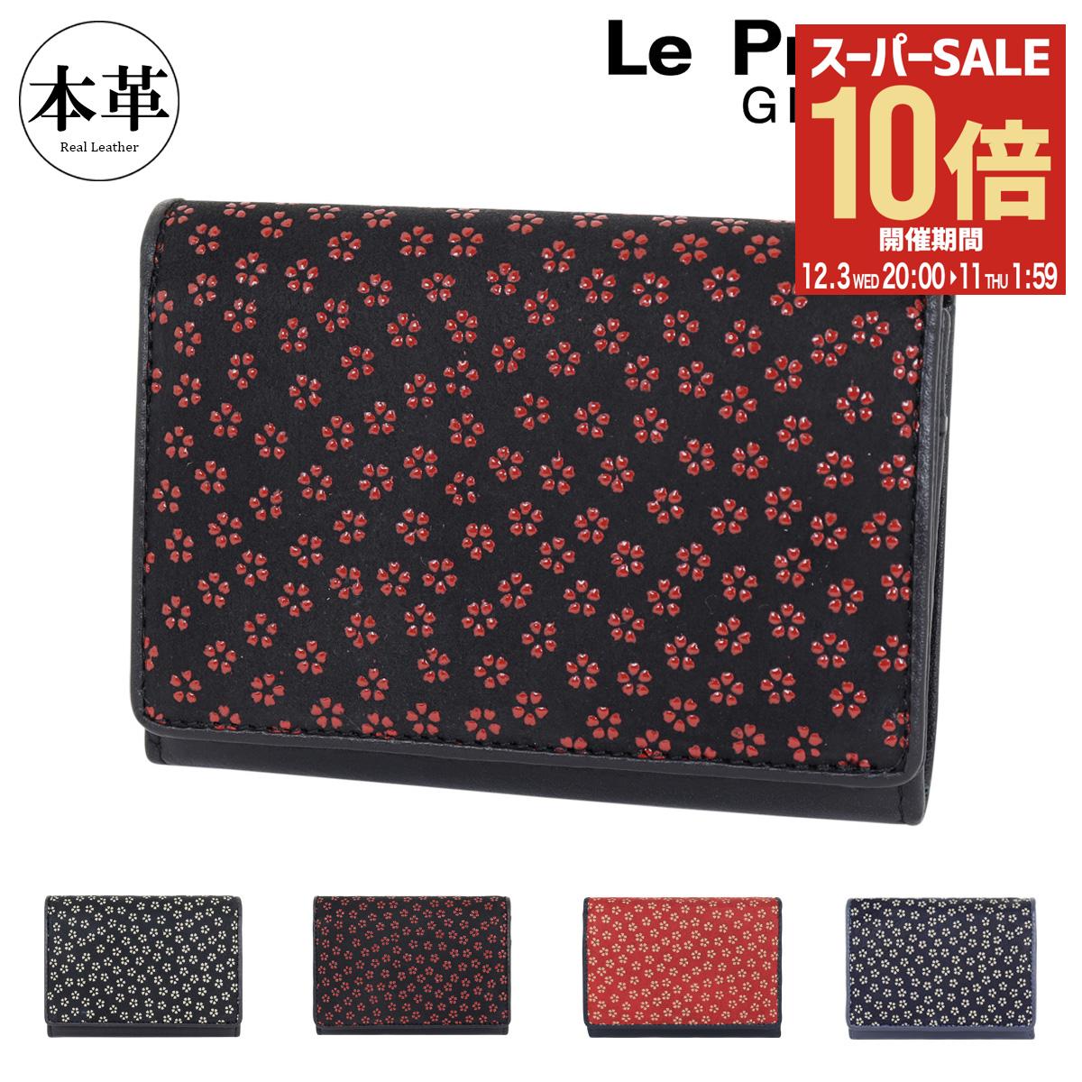 【全品10倍★12/3(水)20時~】ル・プレリー ギンザ 二つ折り財布 本革 レザー 印伝 レディース NPE4212 (NPE4210) Le prairies ginza ミニ財布 コンパクト 小桜 和柄 和風 鹿革 本漆[DL10]