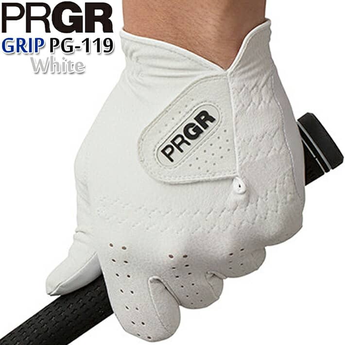 【左手用】 【プロギア】 メンズ 高機能レザーコンポジットモデル ゴルフ グローブ PG-119 ソフトなフィーリングと快適な着け心地 ホワイト/21cm〜26cm(6サイズ) 【PRGR】【お取り寄せ商品】【2019年モデル】【ネコポス対応】
