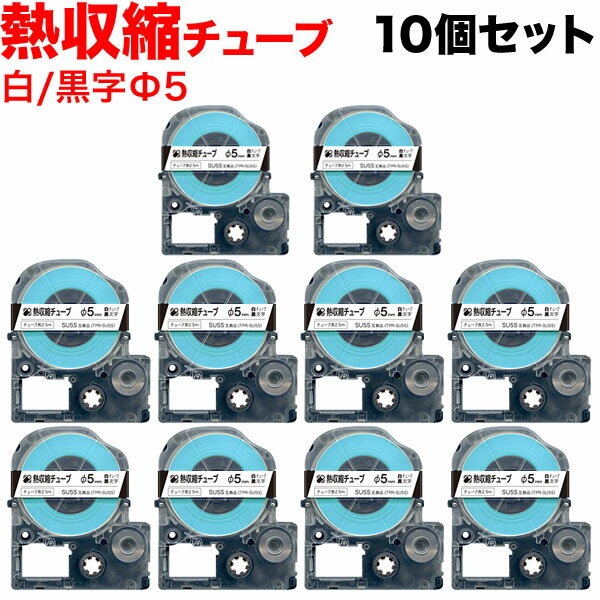 キングジム用 テプラ PRO 互換 テープカートリッジ SU5S 熱収縮チューブ 10個セット Φ5mm/白テープ/黒文字/熱収縮チューブ