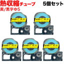 キングジム用 テプラ PRO 互換 テープカートリッジ SU5Y 熱収縮チューブ 5個セット Φ5mm/黄テープ/黒文字/熱収縮チューブ