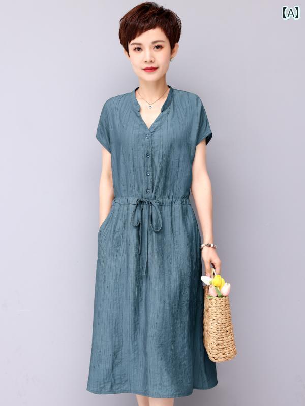 カジュアル ワンピース ひざ丈 ママ コットンリネン ワンピース 2024夏 大きいサイズ ウエスト ゆったり 肌 見せ ノースリーブ ミディアム 丈 レディース ロング スカート