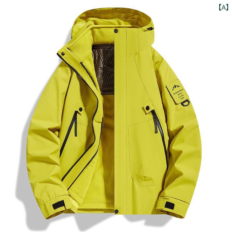 マウンテンパーカー 男女兼用 防風 防水 防寒 アウター 登山服 アウトドアウェア 取り外し可能 春秋冬 蛍光グリーン ブラック アイボリー イエロー ローズレッド 朱雀レッド S M L XL 2XL 3XL 4XL ポリエステル