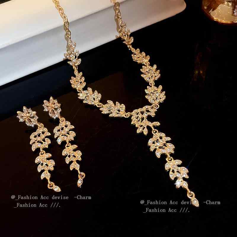 ・素材: 合金・処理工芸: 镶钻・スタイル: 女性用・セット内容: イヤリング、ネックレス・チェーンスタイル: 常规链・ペンダント素材: 合金・柄: 植物、花卉・カラー: ゴールド・対象: 女性・スタイル分類: ファッション、通勤・製品カテゴリ: セット・流行要素: 木の葉、植物、花卉・アクセサリー: イヤリング、ネックレス