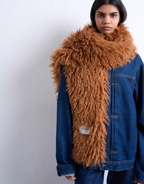 トップショップ レディース アクセサリー マフラー・ストール・スカーフ Topshop Sara shaggy faux fur blanket scarf in tan TAN タン