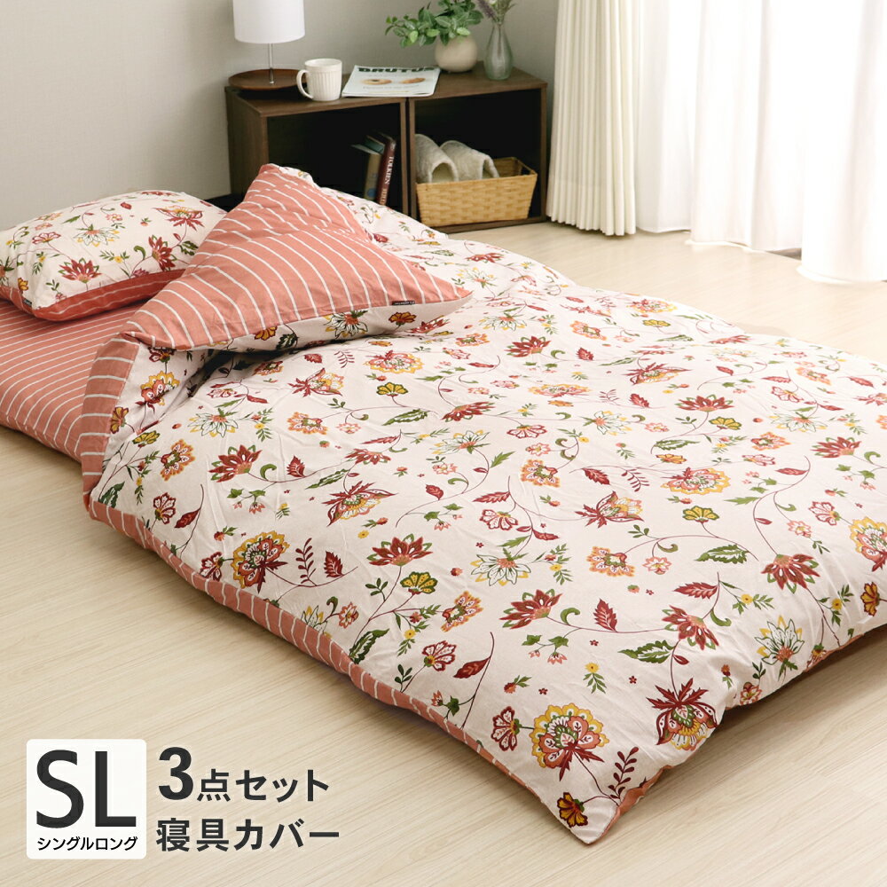 布団カバー3点セット シングルロングサイズ 掛敷枕カバーセット 更紗 可愛い 花柄 洗える 新生活 花柄 D's collection