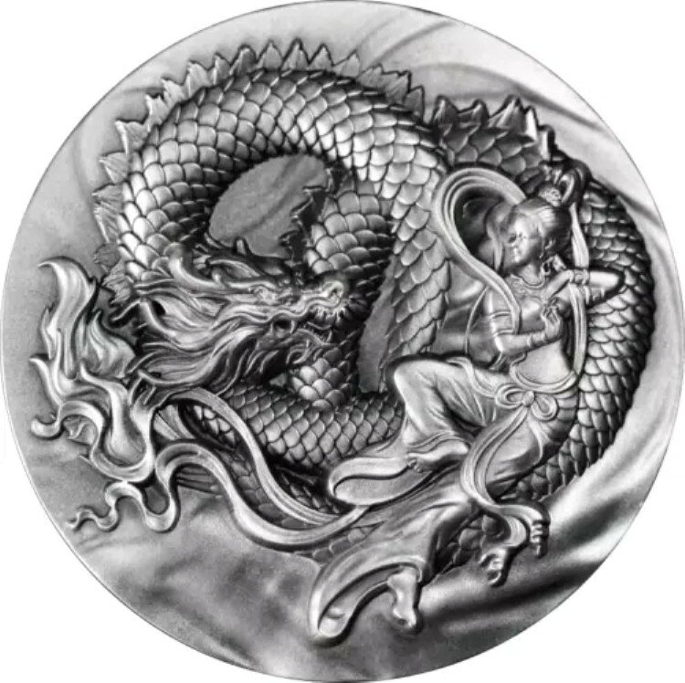 5ドル フライングアプサラス+ドラゴン 超高浮き彫り ニウエ島 2オンス シルバー 2024-