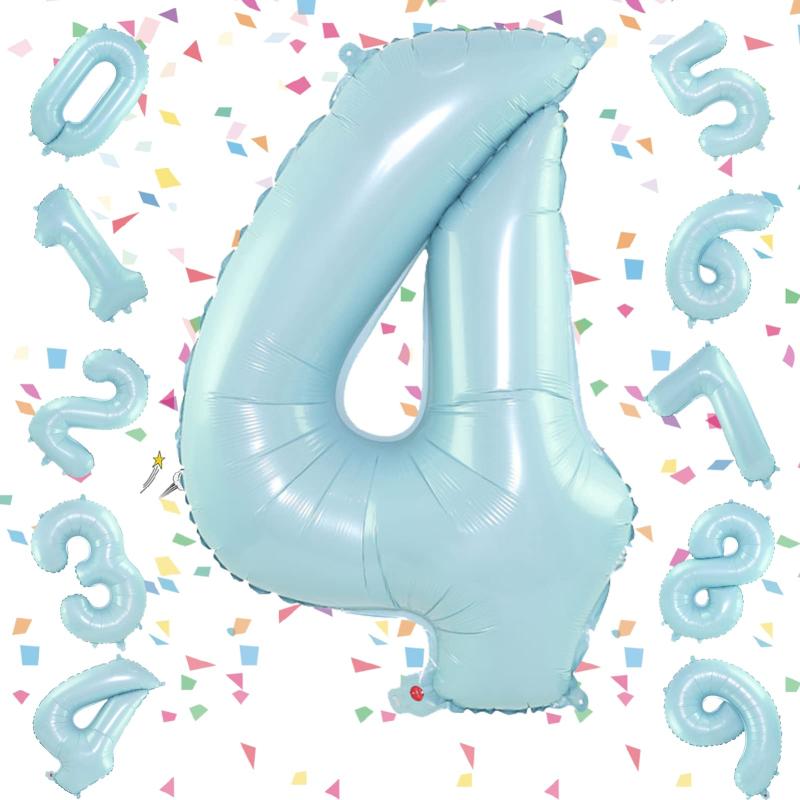 EXGOX 数字 バルーン ライトブルー 大きい 誕生日 ナンバー 4 アルミ風船 32インチ ハッピーバースデー パーティー 成人式 入学 卒業式 記念日 お祝い 飾り付け