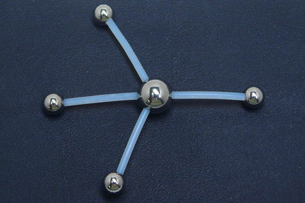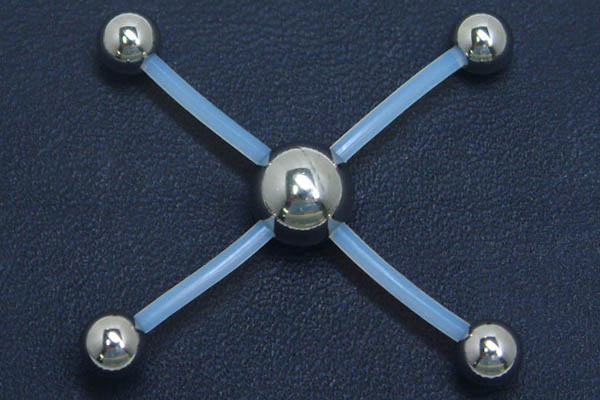 ステンレスボールにテフロンのシャフトを4本つなげたマニアックなボディピアス。4箇所へのピアッシングに使えるボディピアスです。シャフトがテフロンなので、長さも自由自在に変更できるので、自分に合ったサイズのボディピアスが作ることが出来ます。また、パーツがすべて分解できるので、別売りのテフロンシャフトで内径を長いものに変えたり、ステンレスシャフトも使えるので、自分だけのオリジナルピアスにカスタムメイドできる。インダストリアルやへそピアスなどなど使い方も色々。ボディピアス上級者にはたまらないジュエリーです。 スペック14ゲージ(1.6mm)テフロン(PTFE)の長さ:約12mm真ん中のボールサイズ:8mm端のボールサイズ:5mm素材シャフト:テフロン(PTFE)ボール:サージカルスティール316L備考表示は1ヶの価格です。写真はイメージです。実際の商品とは多少異なる場合がございます。ハンドメイドの為多少サイズは異なります。切りすぎても、別売りのテフロンがあればまた長いのが作れるので安心